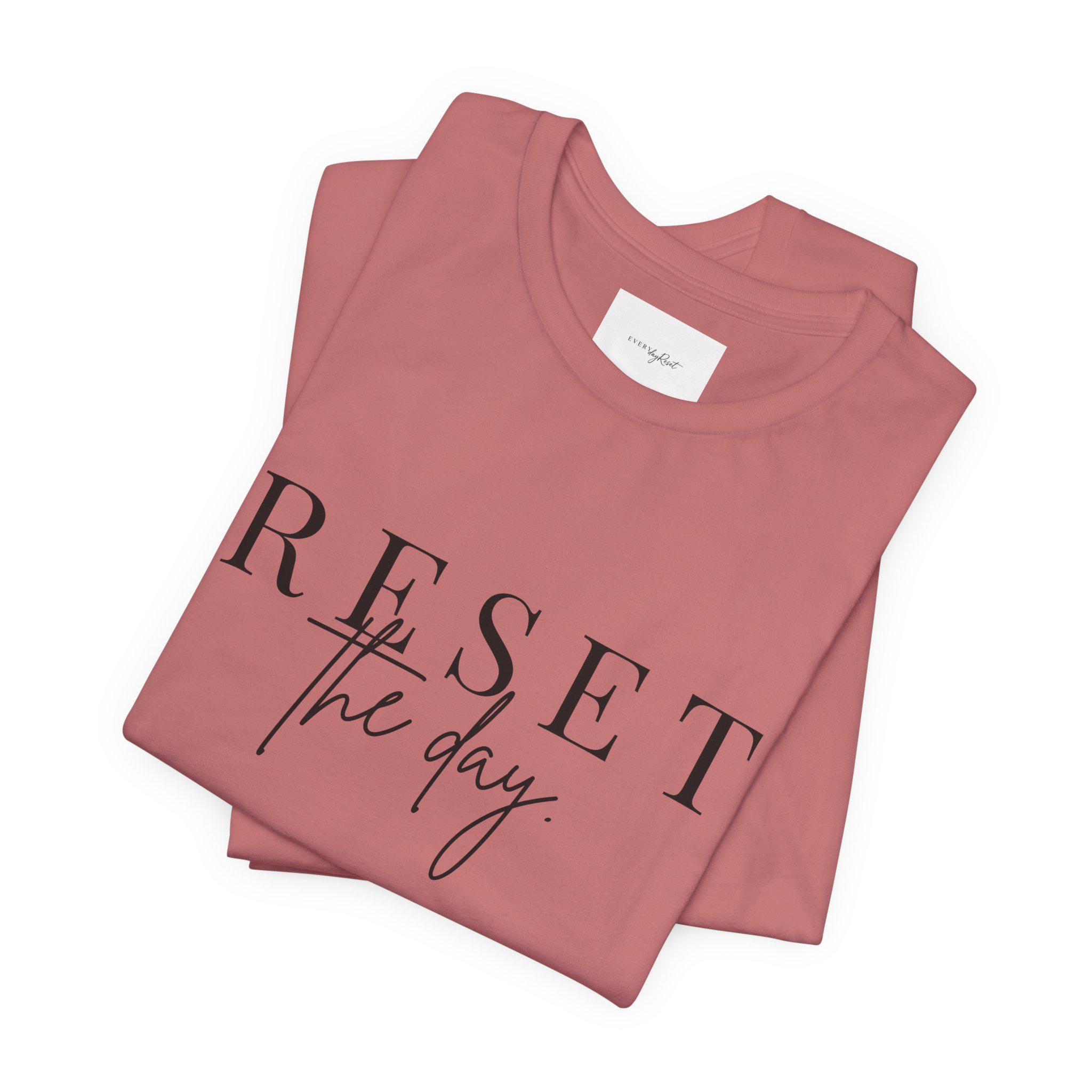 Minimalist "Reset the Day" T-Shirt | Soft Cotton Self Growth Tee