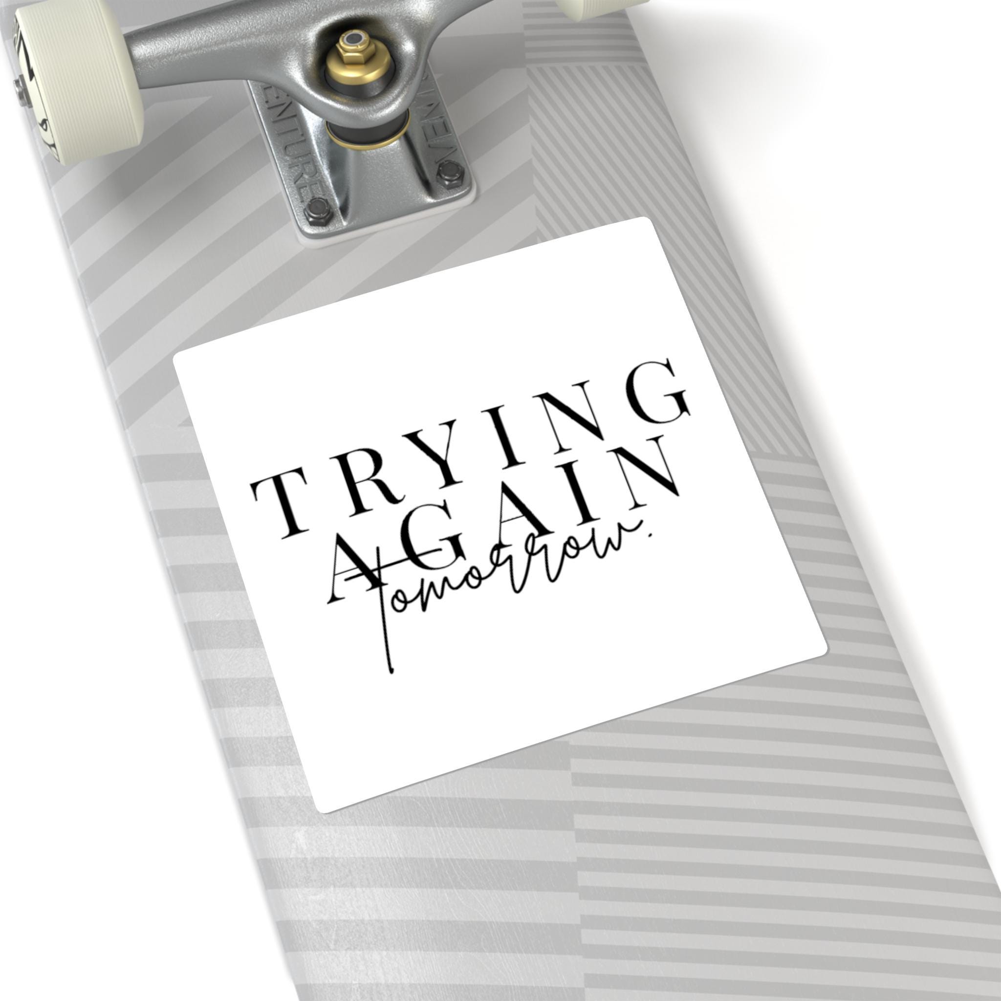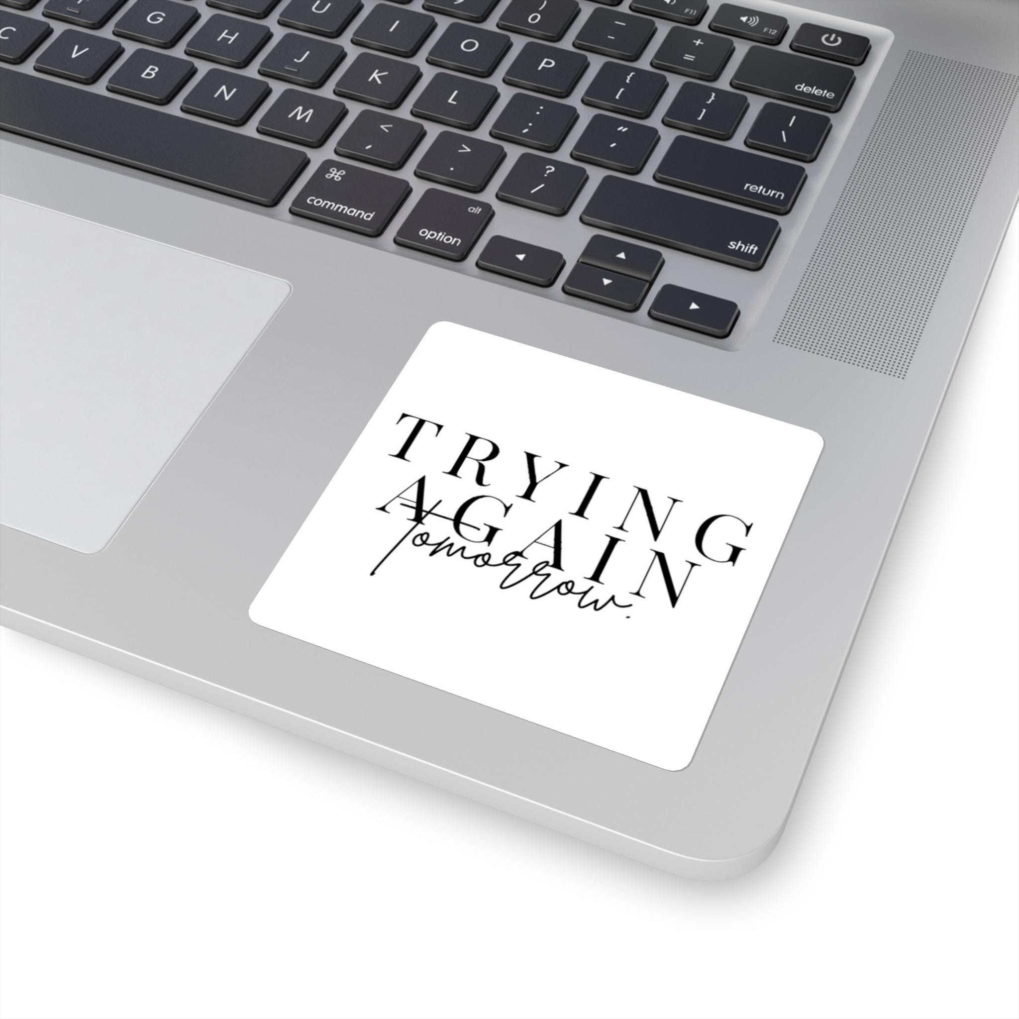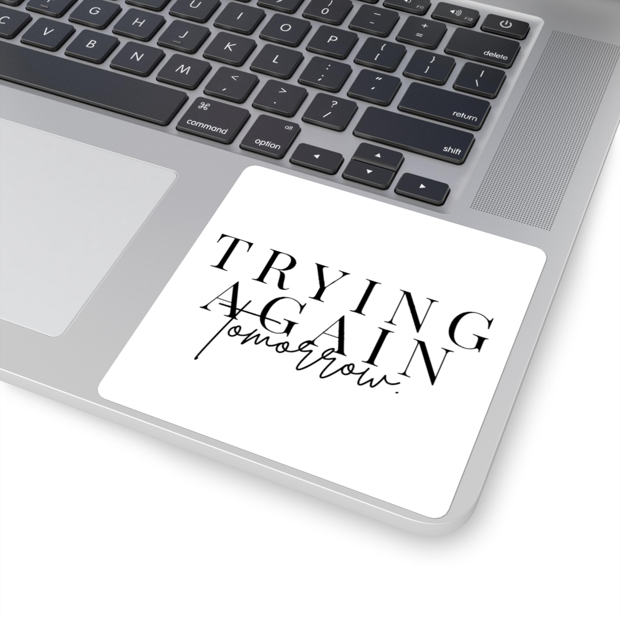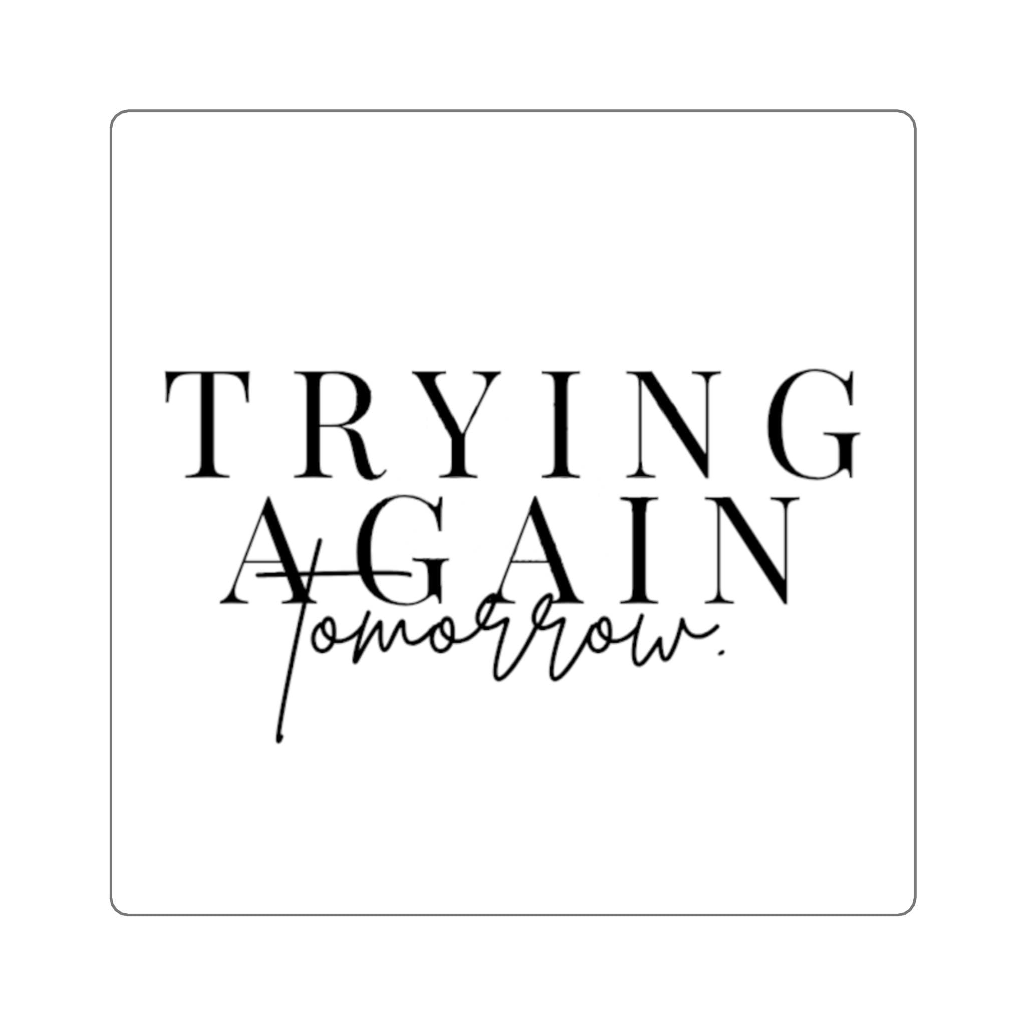 Trying Again Tomorrow Square Sticker | Minimal Typographic Quote