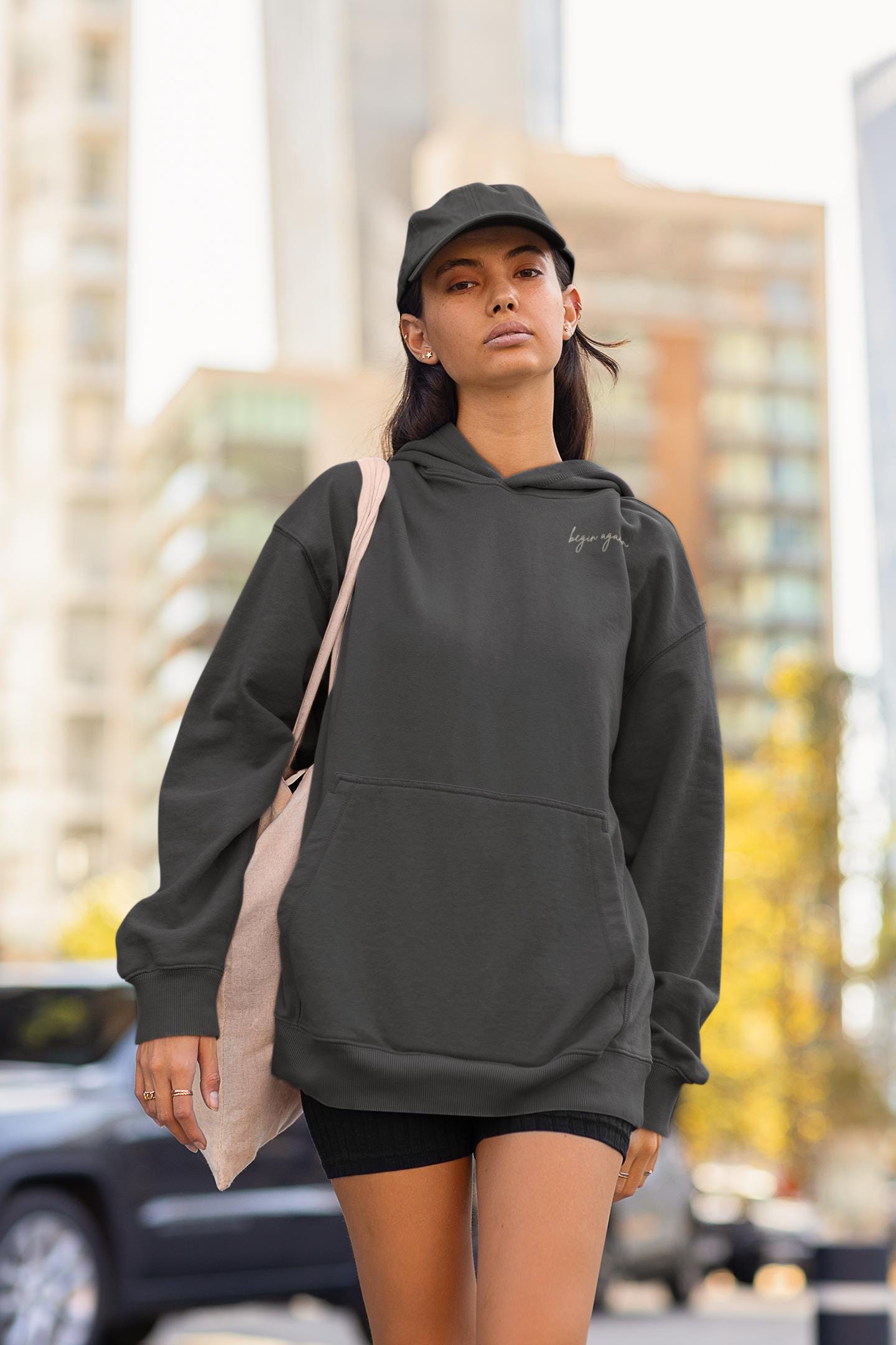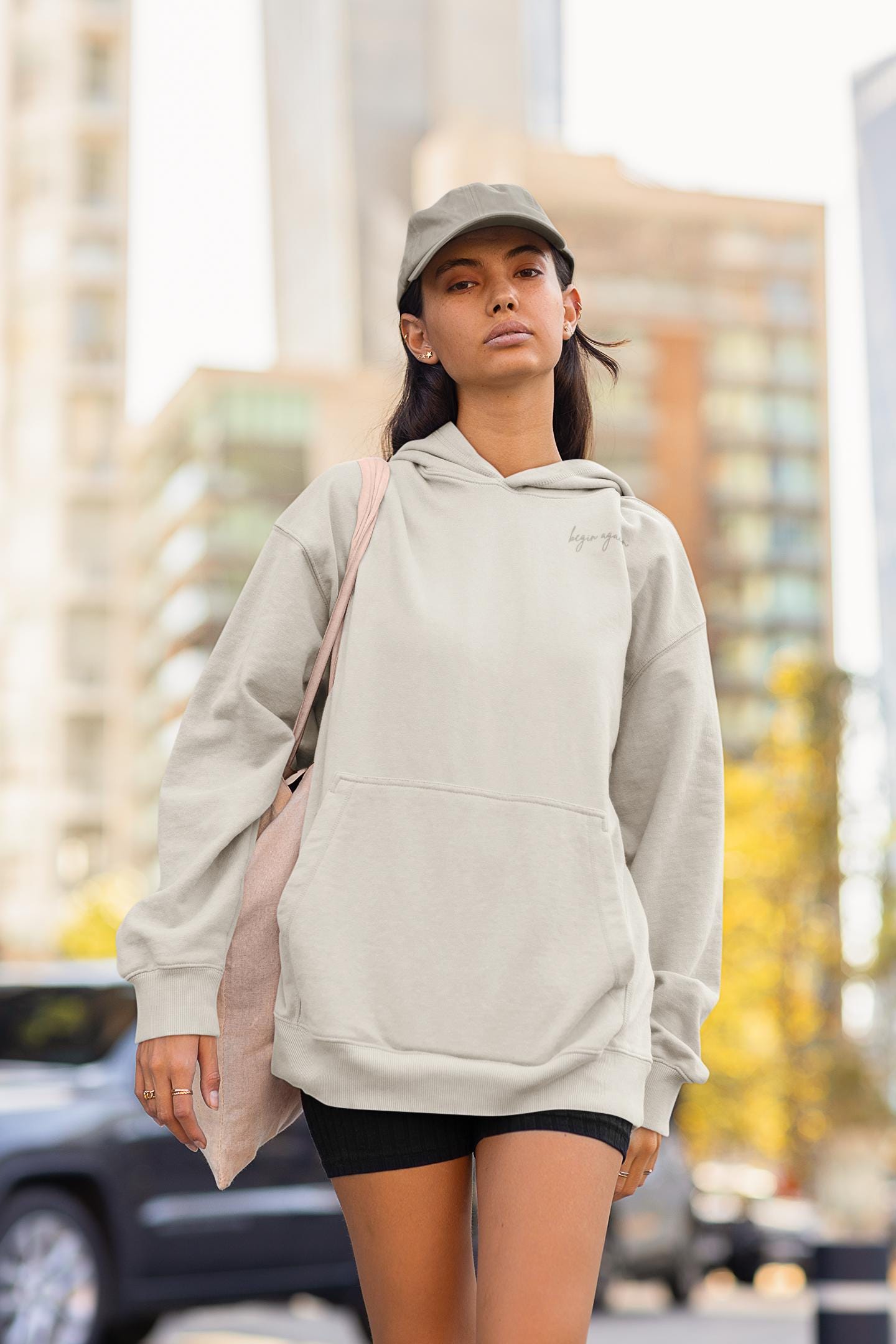 Designed with a clean, minimal embroidered script, this hoodie was created to feel calm, effortless, and wearable with everything — not loud, not trendy, just timeless.
